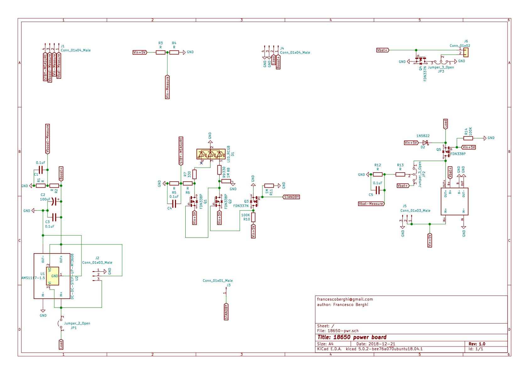 Hi, to power a sensor or actuator with a 18650 li-ion battery I have designed this pcb based on a tp4056 module and MT3608 booster.