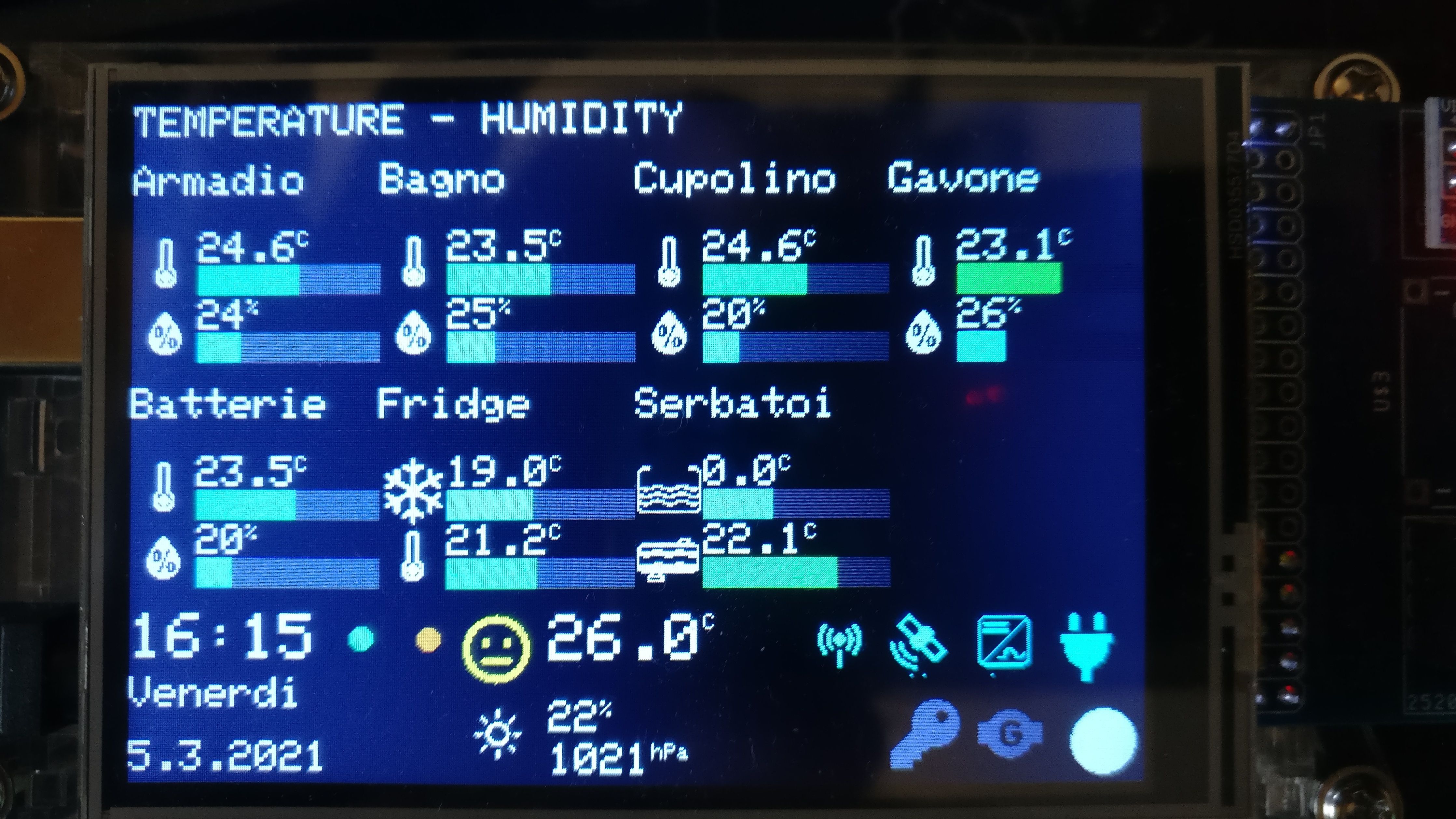 Charge Monitors Batteries Monitor Controller and Mobile Router Fresh Water Level Monitor Fridge Fan Controller Display