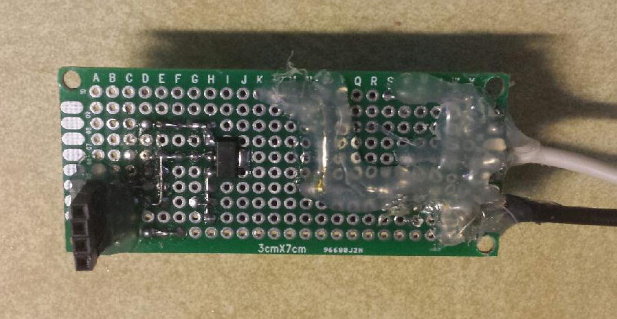 On the bottom side of the board you can see the LM1117 3.3v regulator. For the high voltage side, I have hot glue over all traces for safety in testing.