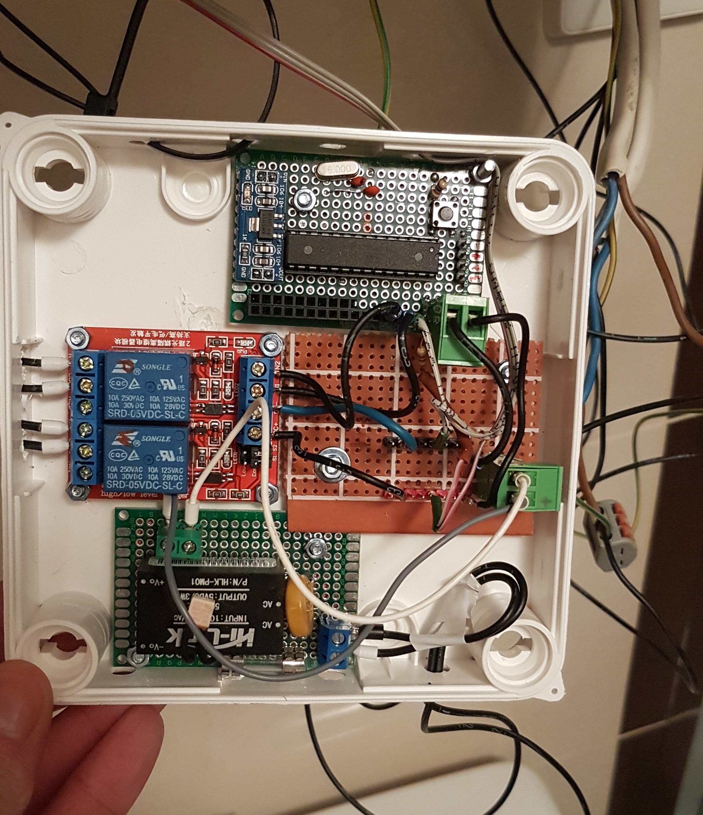 Home made "Arduino with power supply" + relay board + DHT11