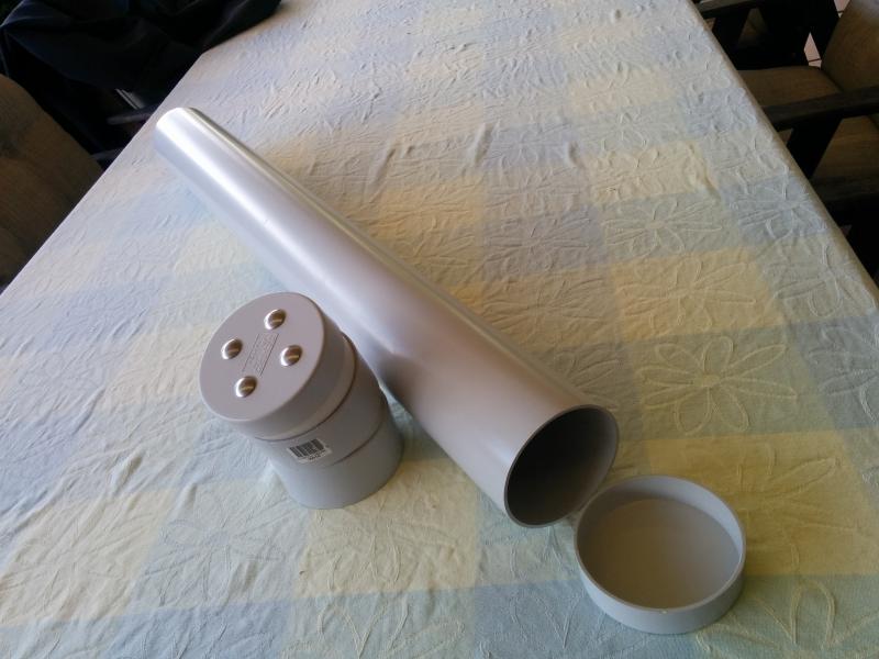 Here are the main parts to the housing. The end cap will be glued on the pipe and then partly buried. Once in the ground i will fill it with 20mm gravel to keep it stable. The touch studs and node electronics will all be located in the top joiner and cap.