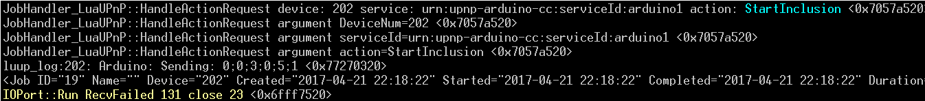 ```JobHandler_LuaUPnP::HandleActionRequest device: 202 service: urn:upnp-arduino-cc:serviceId:arduino1 action: StartInclusion <0x7057a520>