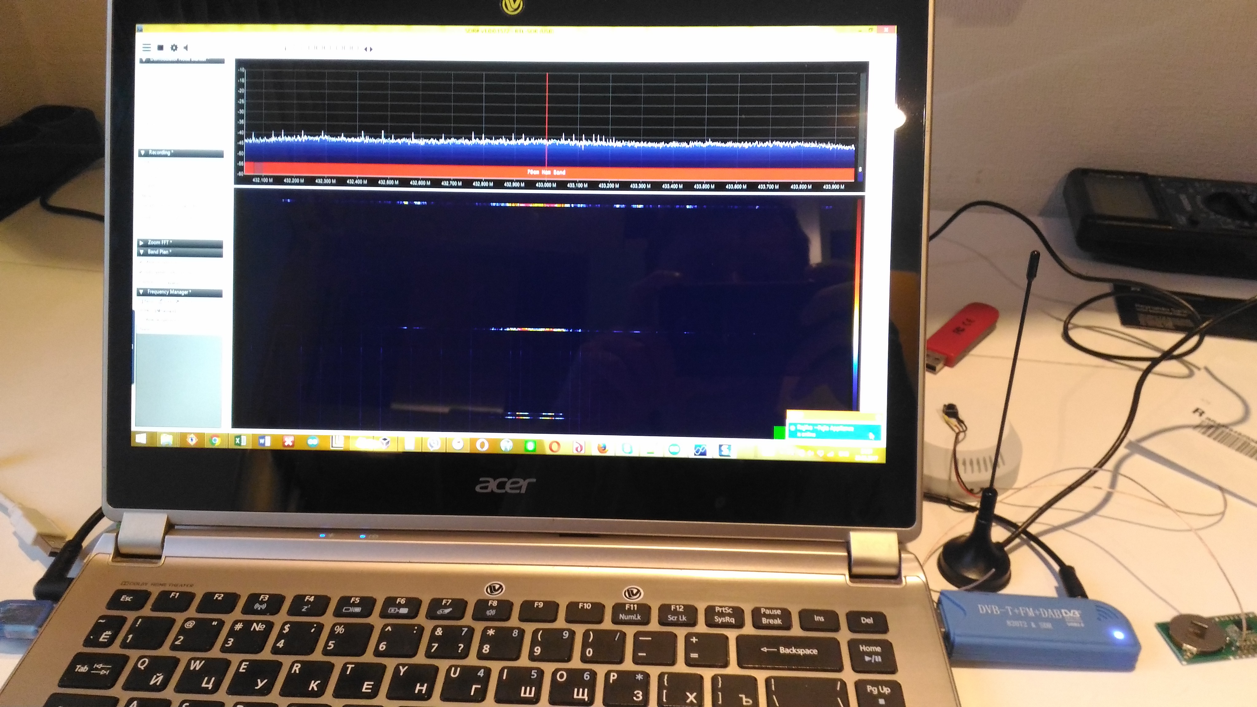 Once a week I was having NACK blackout. All nodes could not send nor receive anything. Initially I was resetting everything and after some 20 minutes I was “able to fix” things. However, it was reappearing. Looked very strange. I bought very very very useful device called RTL-SDR (R820T) software digital receiver. Just in case you do not have, it is worth to buy. Yes, it is around $7 dollars from aliexpress include delivery. The device is not good for NRF since range is 24 - 1766 MgHz but for RFM it is super good. Back to my problem though, I found the noise at 429 -437 Mghz and it lasts around 20 minutes, the time “I was fixing things” previously. Huh!
